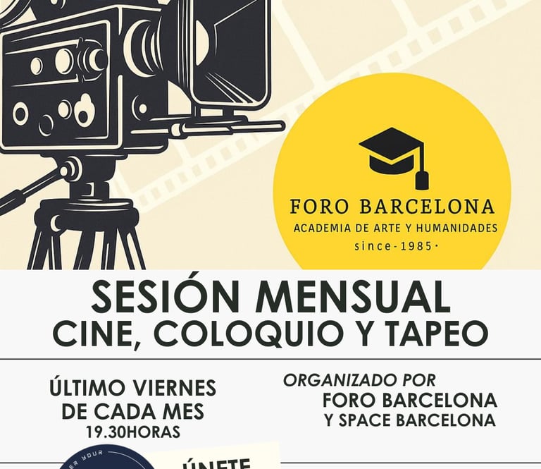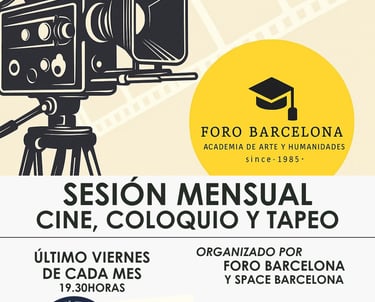 Una Sesión Mensual (último viernes de cada mes) . Películas seleccionadas cuidadosamente para generar impacto, análisis y debate. Además compartimos tapeo y charlas. Grupo Máximo 20 personas.